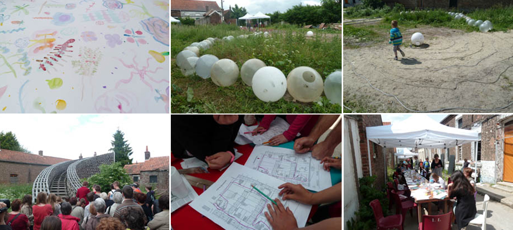 Rencontres-ateliers avec plusieurs artistes, destinés aux scolaires, événements le week-end destinés à tous, à la Cité des Électriciens à Bruay-la-Buissière, ancienne cité minière transformée en lieu culturel